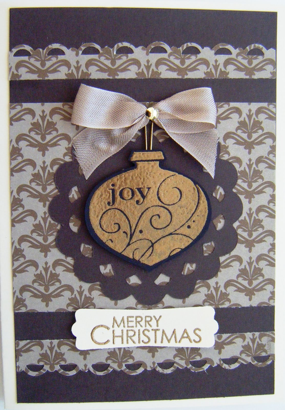 This card is one that Shazza let me take a photo of when we were at Julies for our December Training. I think that I have done it justice - although it took some time to fathom out how to make the medallion (I haven't done one of these cards before today, and I never thought to ask Shazza how to make it) Anyhow, Chris and I have crafted together today and both made this card. Here's my version